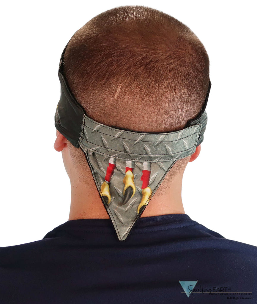 Sparkling EARTH offers a wide selection of Patriotic Chop Top Doo Wrap Bandanas including the Scrap Metal Eagle sublimation print. These doo wraps are designed to be worn low on the brow, giving the appearance of a folded bandana. Each doo wrap bandana features a built-in soft terry cloth sweatband for added comfort. The adjustable pull-on chop top doo wrap combines the ease of a pull-on design with the flexibility of an adjustable hook and loop strap, ensuring a snug and secure fit. The design styling keeps the chop top bandana comfortably in place and the strap can be tucked in. The sublimation print design will not fade. Perfect for long rides, on the job, or for any weekend warrior looking to stay cool and stylish.
