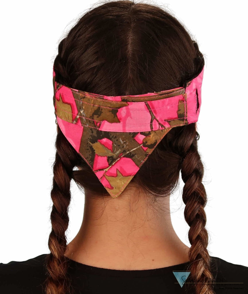 This Ladies Pink Camouflage Chop Top Doo Wrap Is designed to be worn low on the brow, giving the appearance of a folded bandana. Each doo wrap features a built-in soft terry cloth sweatband for added comfort. The adjustable pull-on chop top doo wrap combines the ease of a pull-on design with the flexibility of an adjustable hook and loop strap, ensuring a snug and secure fit. This design keeps the chop top comfortably in place. If a printed design, the design is featured on both sides of the tail for a polished look. Perfect for long rides, on the job, or for any weekend warrior looking to be stylish.