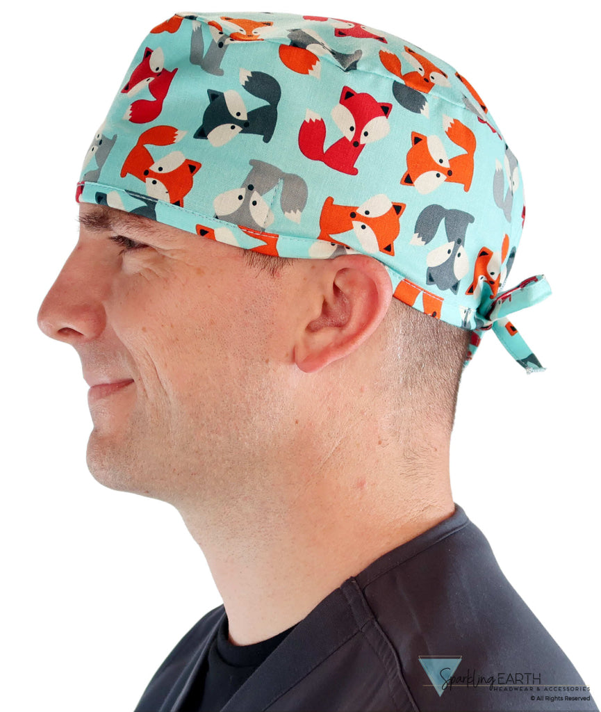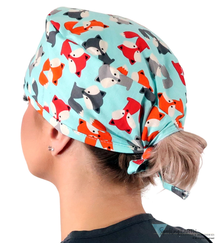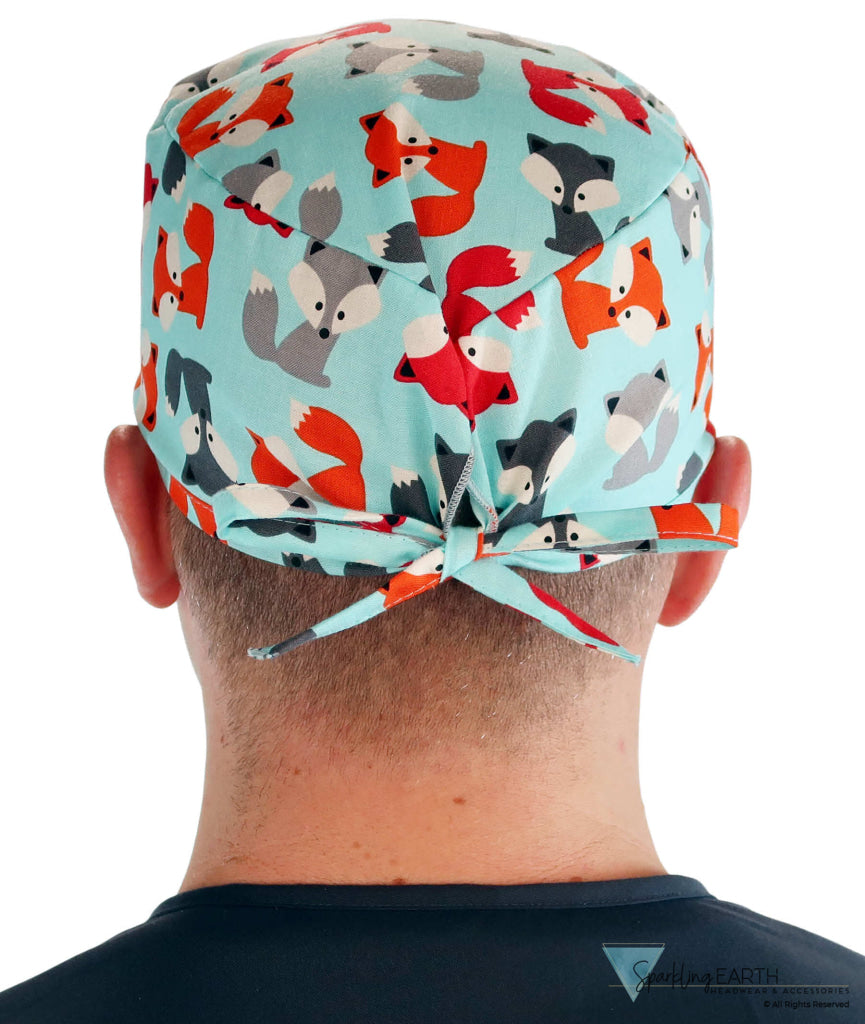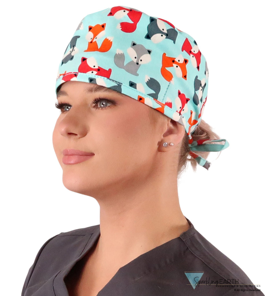 Classic Cotton Surgical Scrub Cap - American-Made with Sweatband - Friendly Foxes