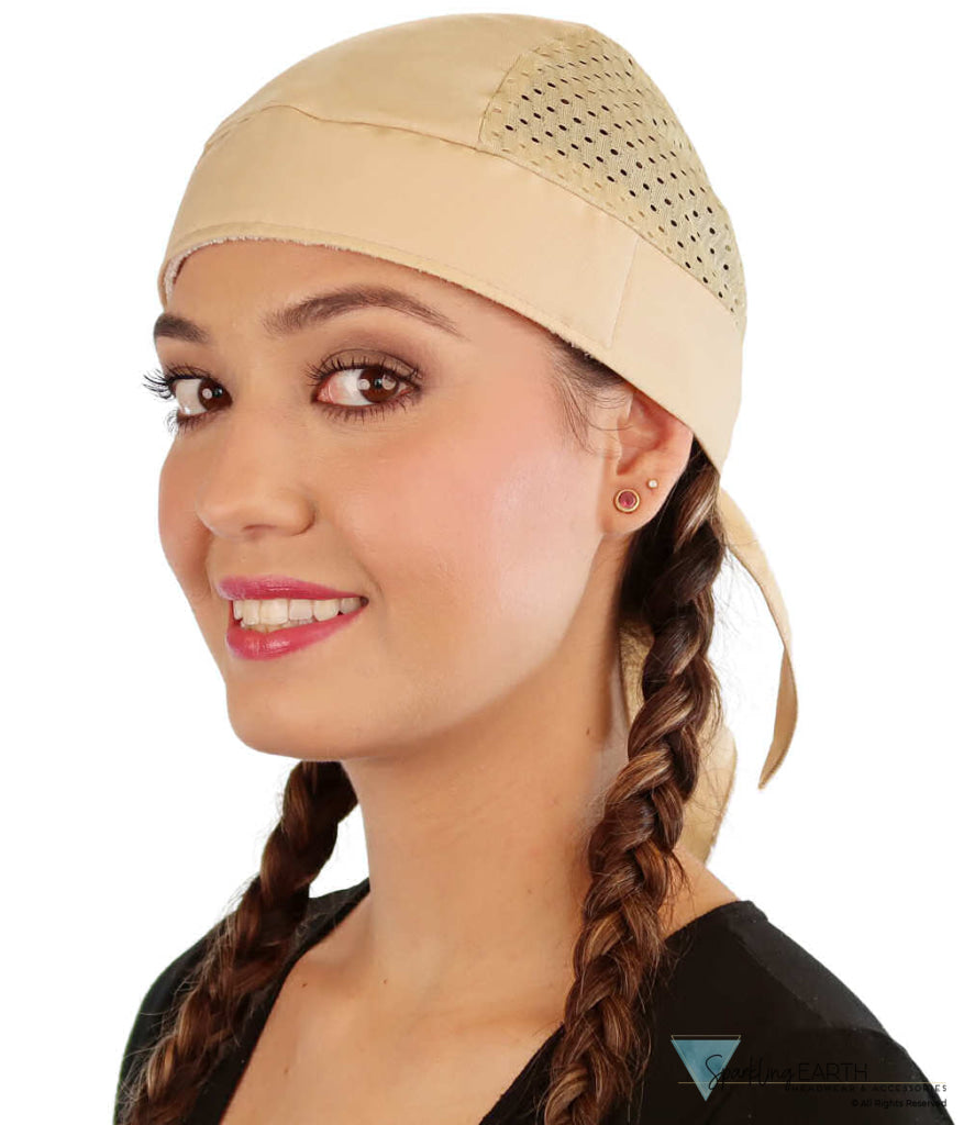 Breathable Cotton Skull Caps with Air Flow Side Panels - Ultimate Comfort Cotton - Tan Air Flow (Mesh Sides)