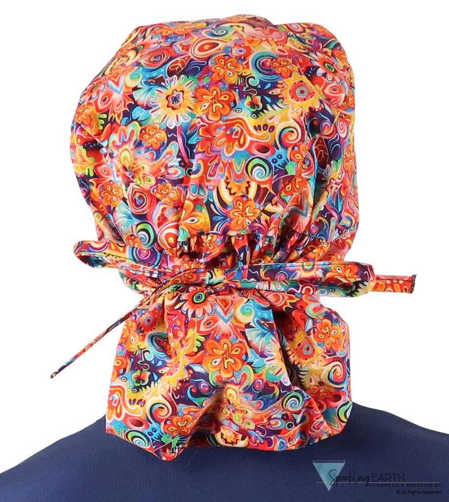 Big Hair Ponytail Surgical Scrub Cap - Scrub Cap for Long Hair - Floral Fury