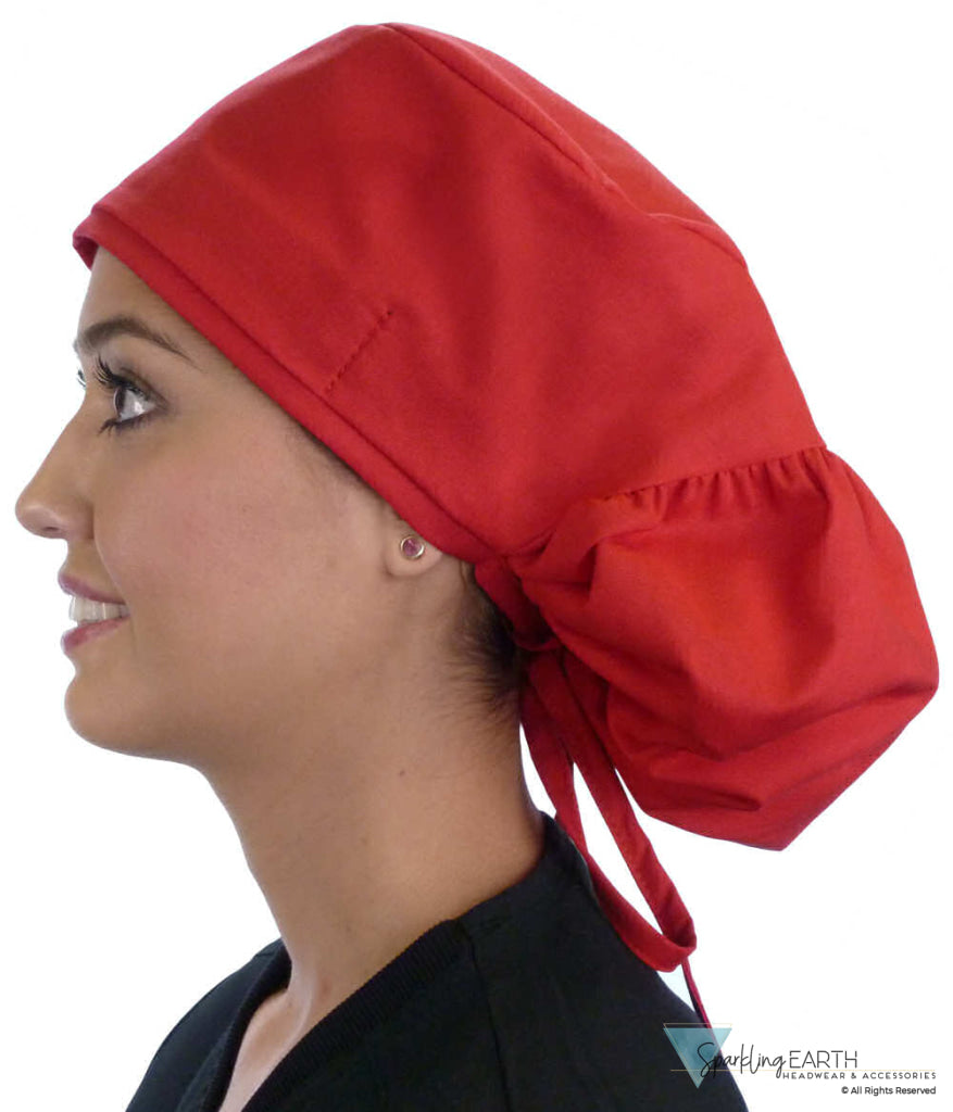 Big Hair Ponytail Surgical Scrub Cap - Perfect Scrub Cap for Long Hair - Red