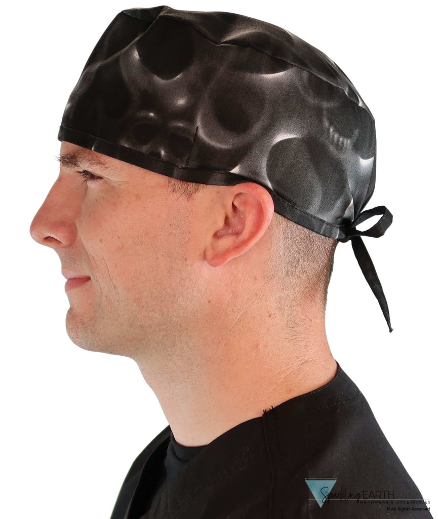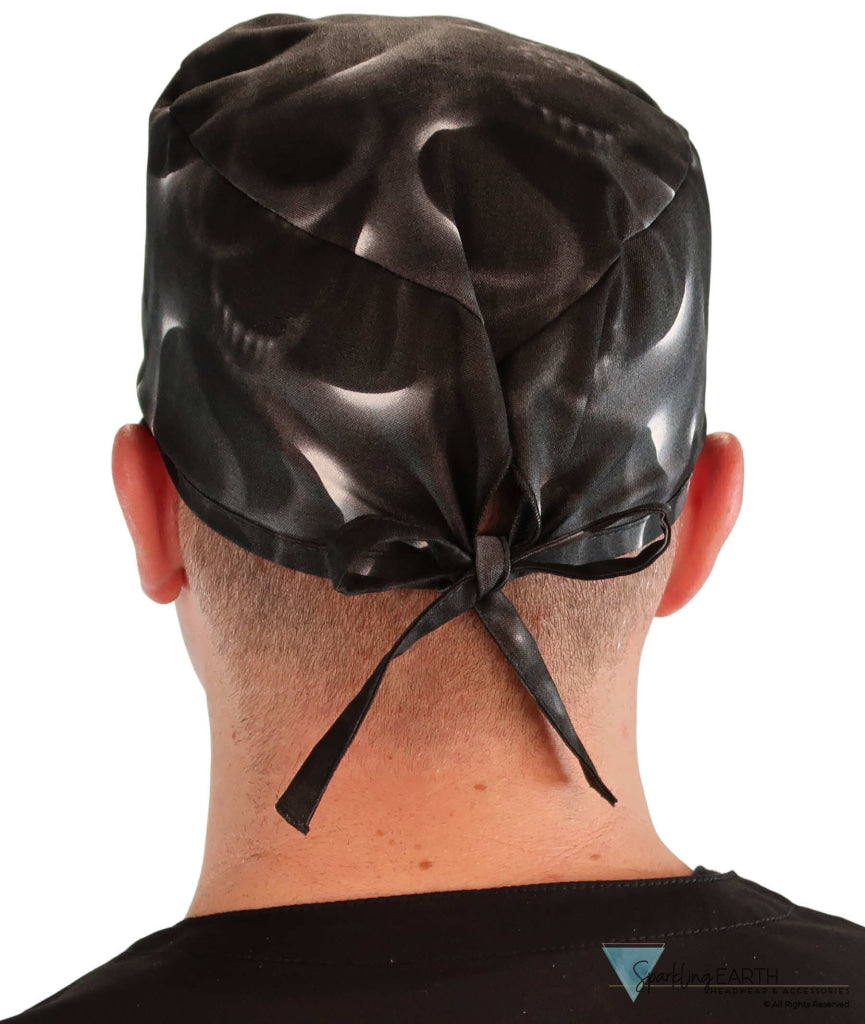 Classic Cotton Surgical Scrub Cap - American-Made with Sweatband - Ghost Skulls on Black