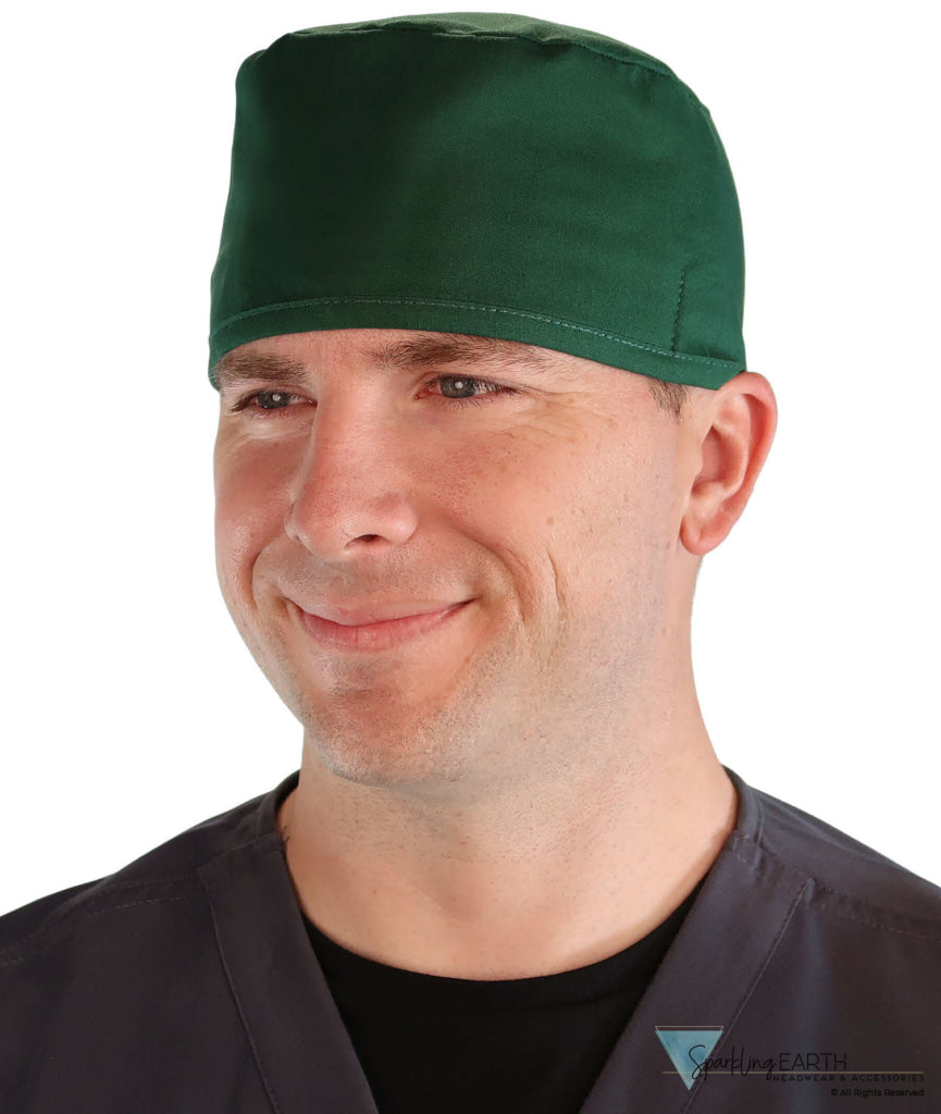 Classic Cotton Surgical Scrub Cap - American-Made with Sweatband- Solid Hunter Green