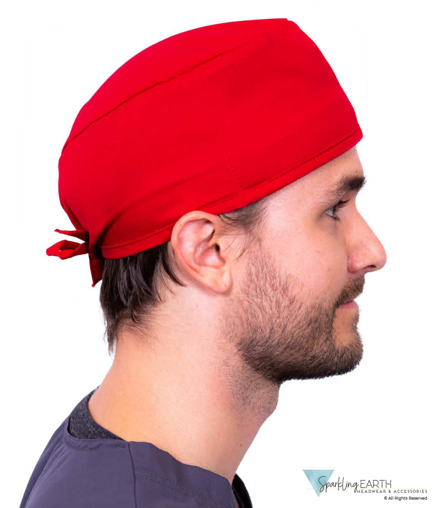 Classic Cotton Surgical Scrub Cap - American-Made with Sweatband- Solid Red