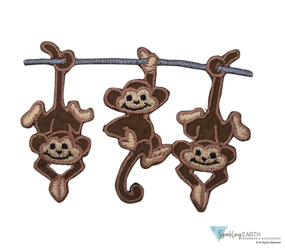 Embellished Euro Style Riley Comfort Scrub Cap - American Made - Black Cap with Playful Three Monkeys