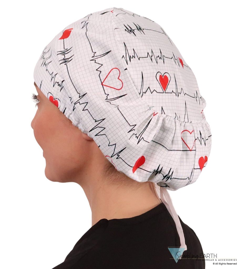 Euro Style Riley Comfort Scrub Cap - American Made - Heartbeats on White