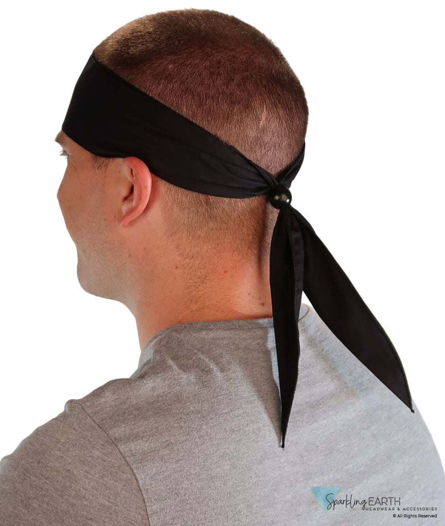 Martial Arts Headband – Adjustable, Tapered Ends & Bead - Solid Black